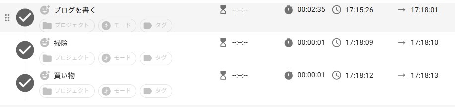 タスクの数が増えてきたら、1つ1つにかかった時間をチェックしてみましょう。