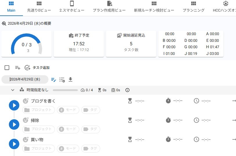 たとえば、「ブログを書く」タスクを実行したいならば、「ブログを書く」というタスクのボタンを押しましょう。